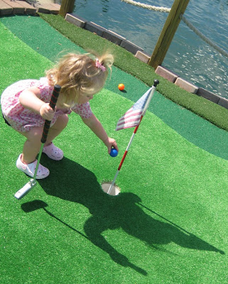 What a memorable time we had as a family! We were both so proud of Ella for hanging in there and doing her best to play mini golf with Mommy and Daddy! She would actually hit the ball with her putter and then run and pick it up wherever it was and throw it into the pin-cup each hole! It was adorable.